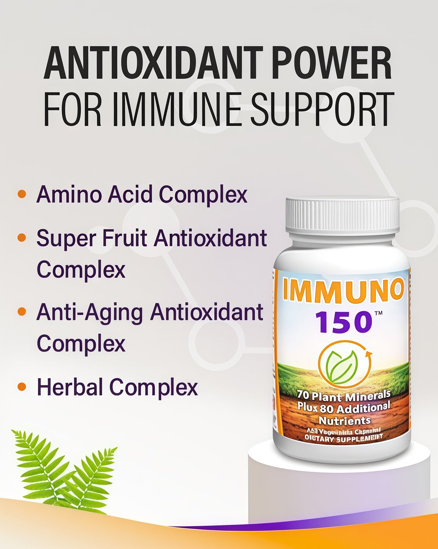 IMMUNO 150 was formulated to strengthen immune systems and correct many abnormalities.Its 70 plant-derived colloidal minerals are the key to its success.Blended with 80 carefully selected, premium nutrients, it’s one of the finest supplements available.