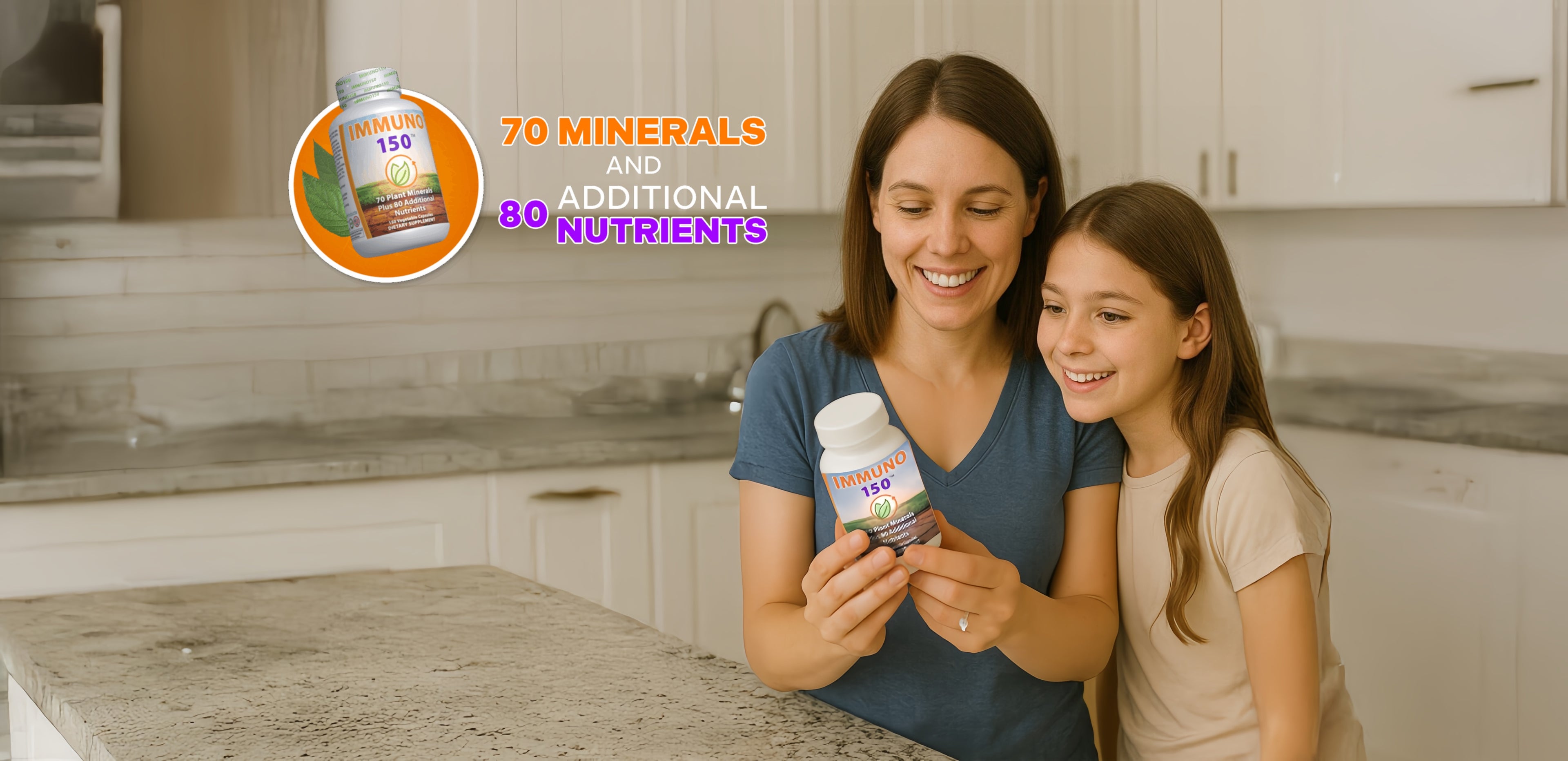 Everything Your Body Needs: Immuno 150 is a convenient and affordable, all-in one complete mineral and vitamin complex for all age groups that includes 70 minerals with 80 nutrients that promote energy, immunity, and optimal vitality. 30 servings per bottle.